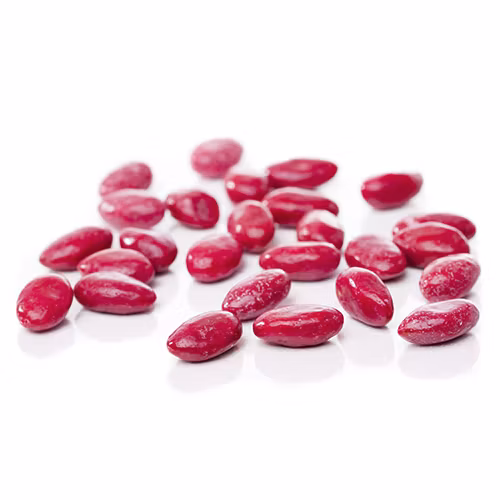 Socker, glukossirap, palmolja, sheaolja, helmjölk, rålakrits, emulgeringsmedel (mono- och diglycerider av fettsyror), salt, ytbehandlingsmedel (bivax, carnaubavax, schellack) och färgämne (karmin).