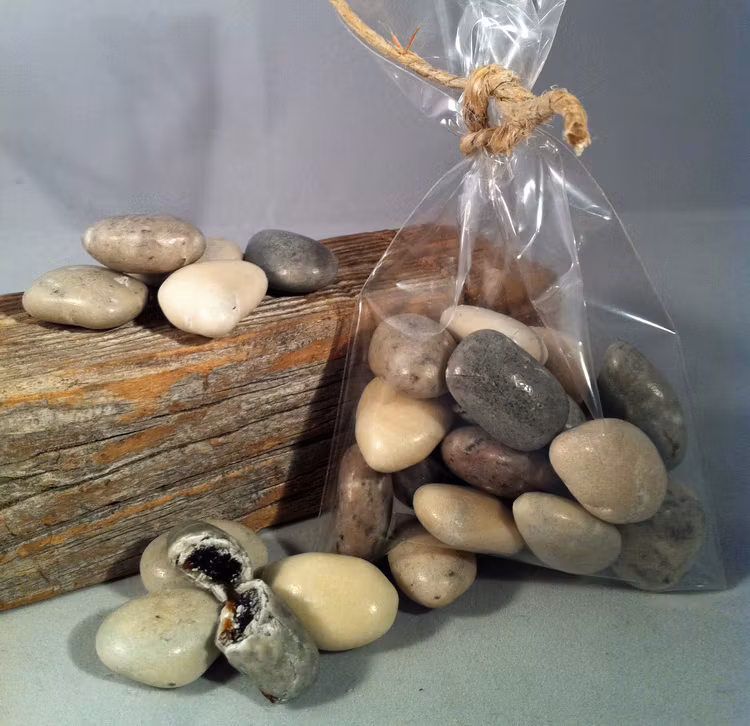 Vackra godisbitar som liknar stenar och kan också vara en trevlig dekoration vid matbordet.
